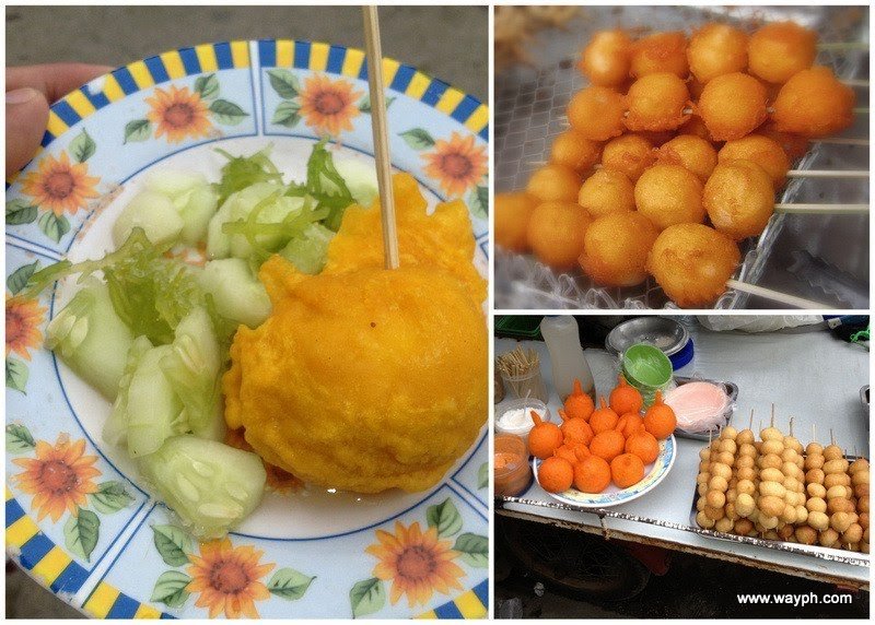1. Stick on Foods- (Kwek-Kwek or Tokneneng, Fish Ball, Squid Balls and Tempura)